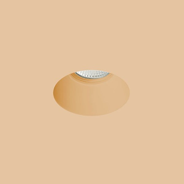 Recessed trimless downlight of plaster with a round opening. Surface can be colored with interior paint. Only for drywall installation. Needs an appropriate transformer which is sold separately.
