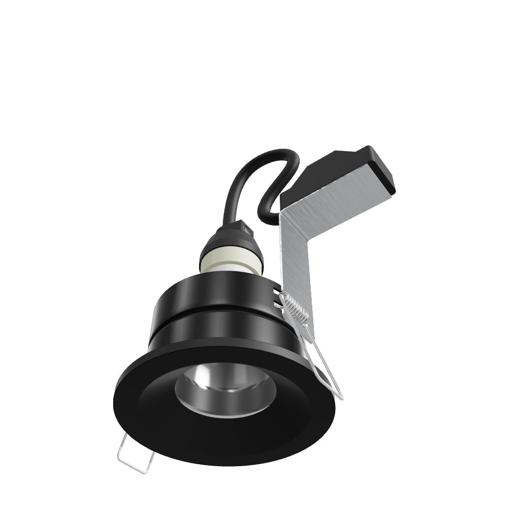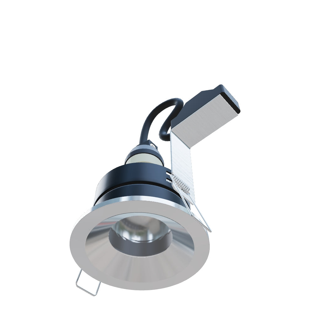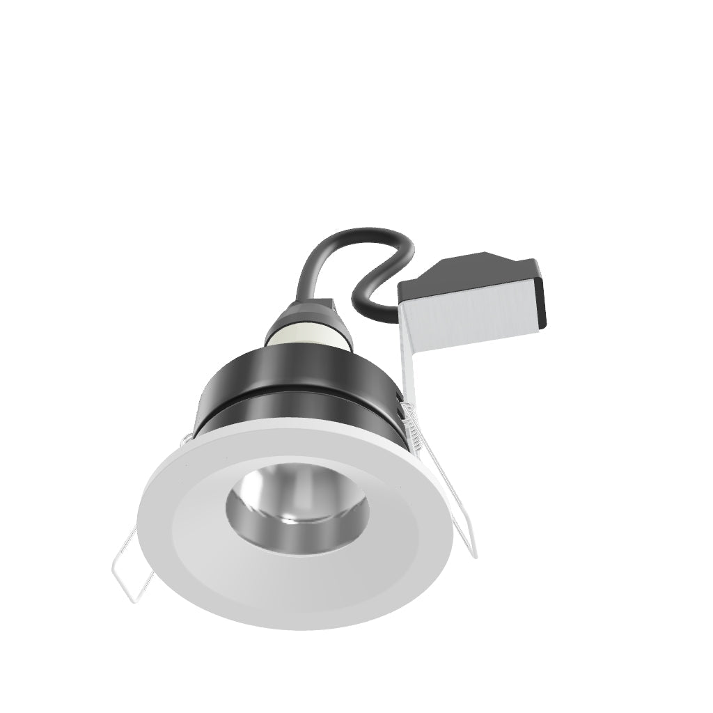 Recessed bathroom downlight for plaster ceilings with a recessed GU10 socket for LED light sources.