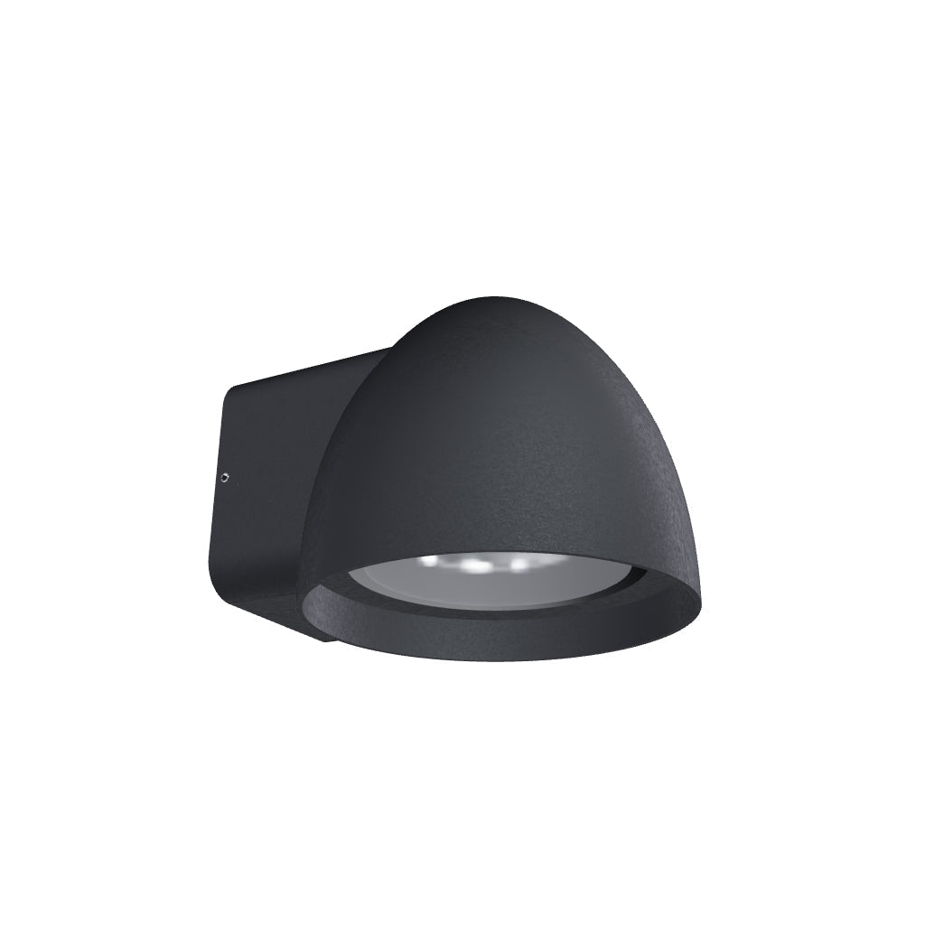 Outdoor wall light for GU10 light sources. The outside of the lamp is of lacquered die-cast aluminum.