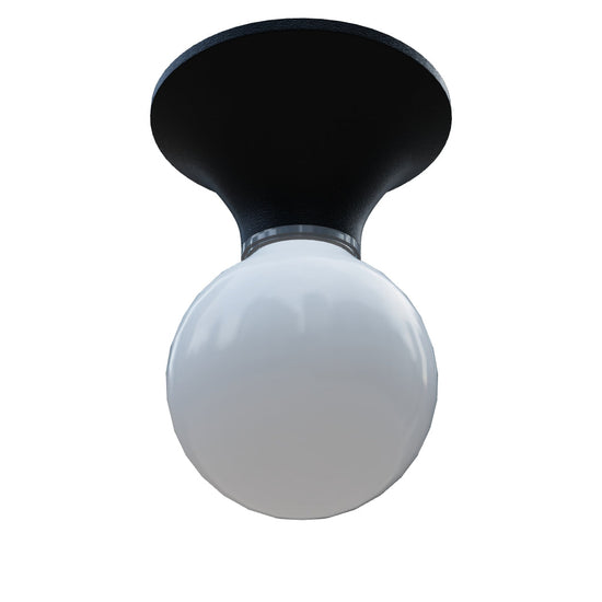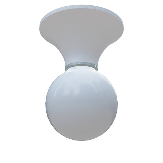 Ceiling-mounted plastic base for decorative LED light sources with an E27 base. Suitable for wet environments.