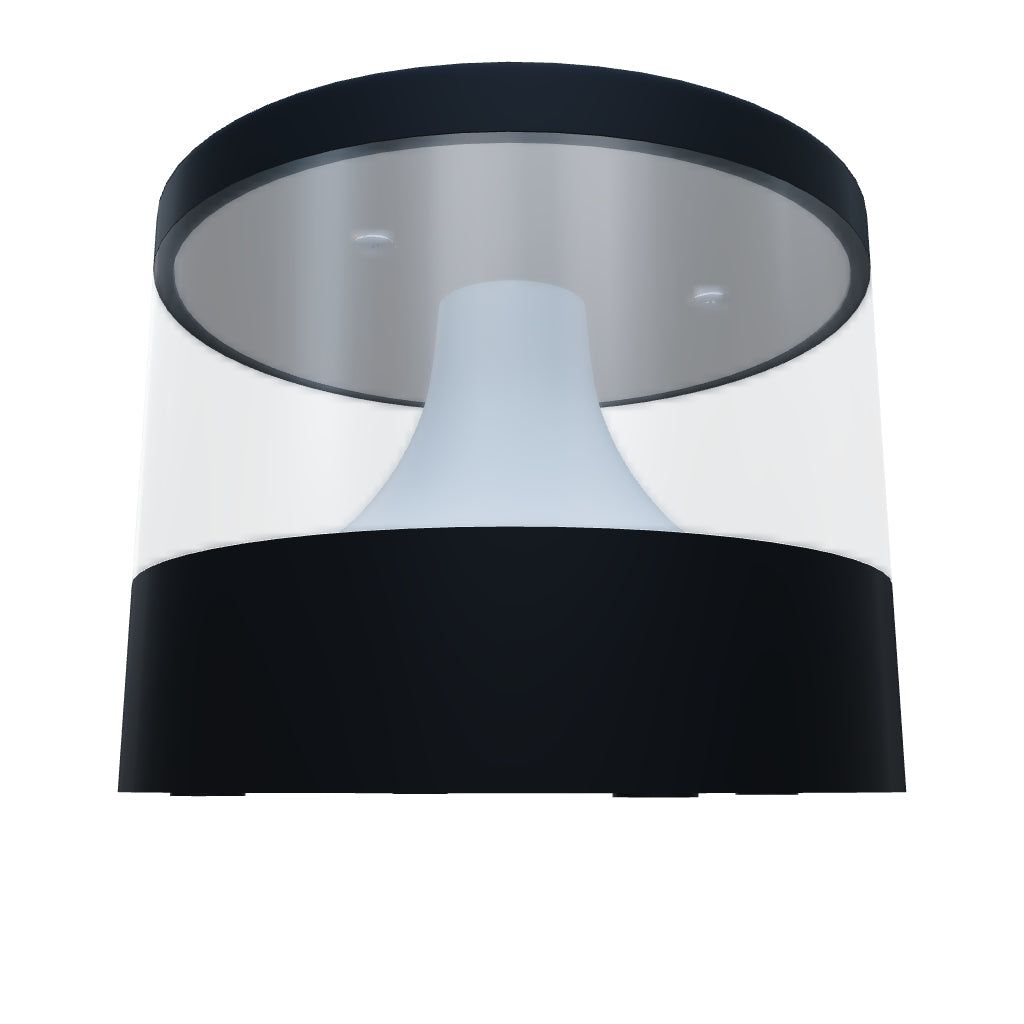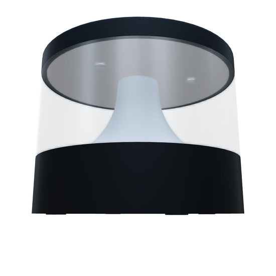Outdoor surface-mounted LED light with soft light emission evenly radiating to the sides.