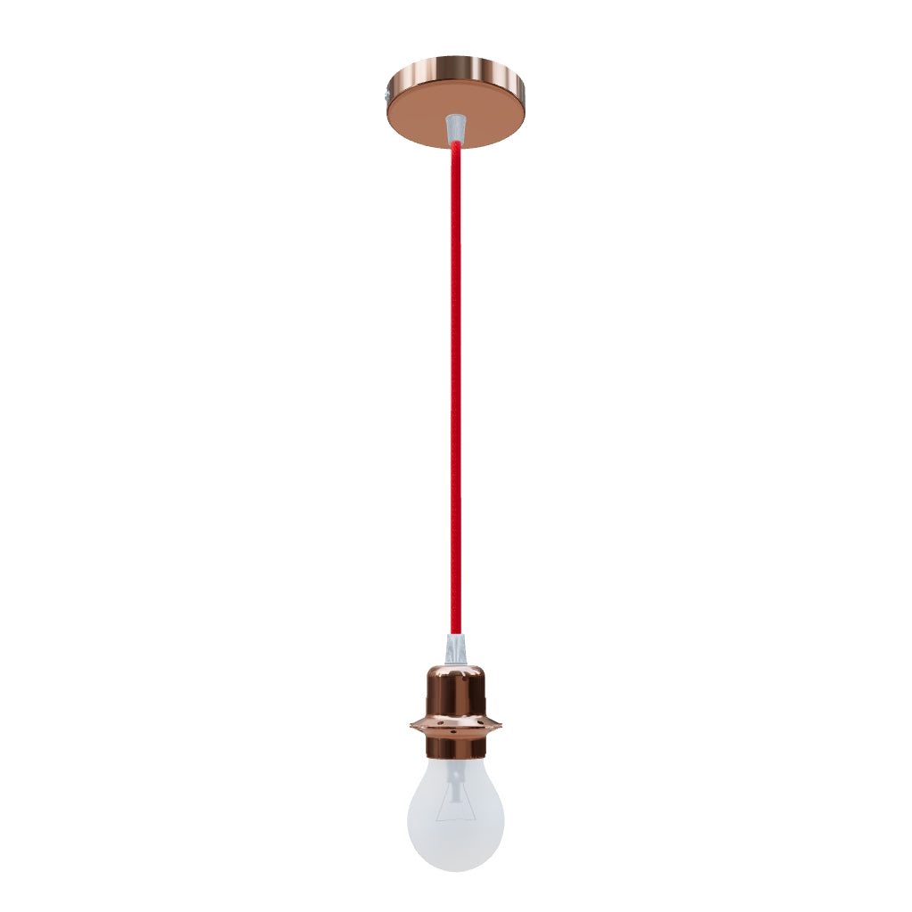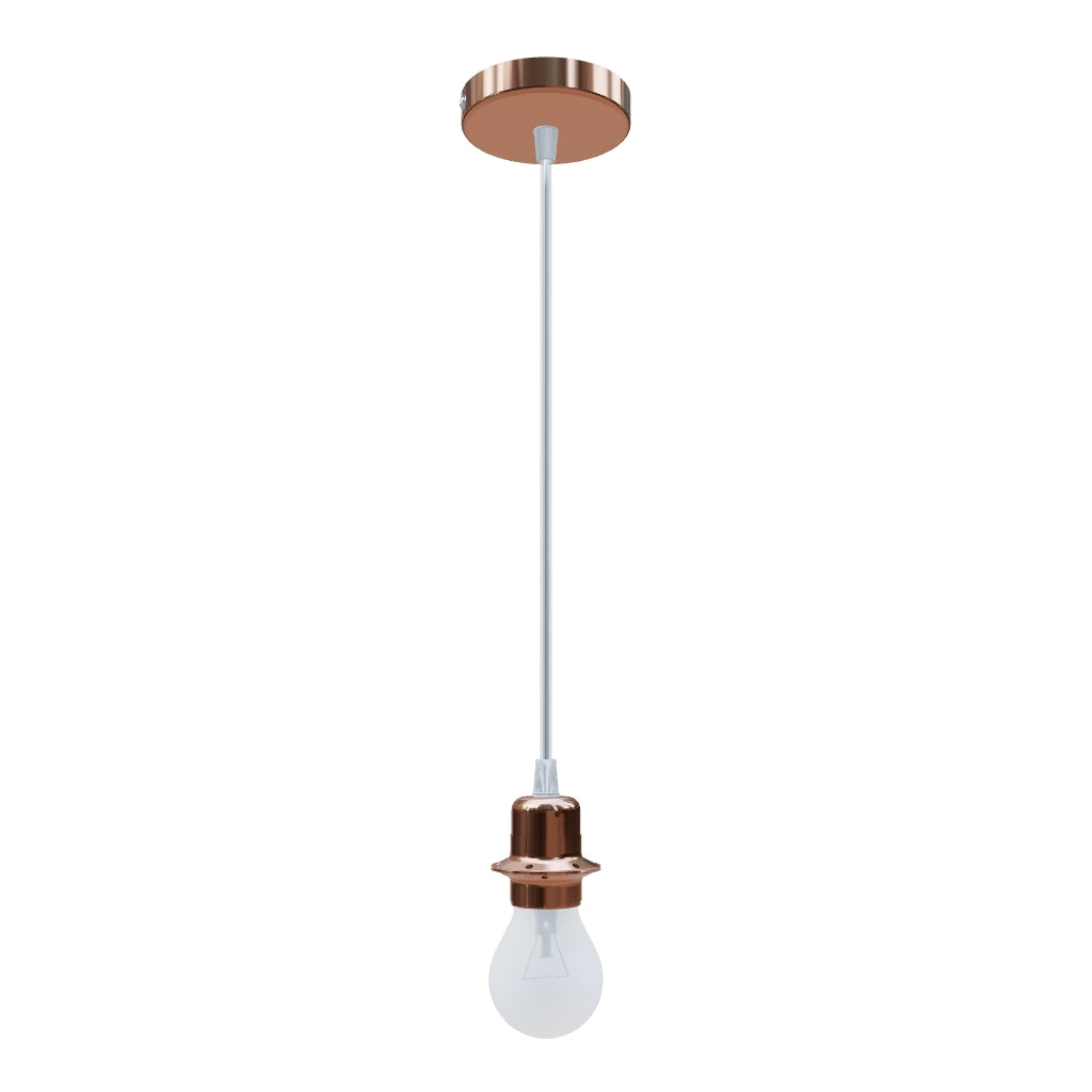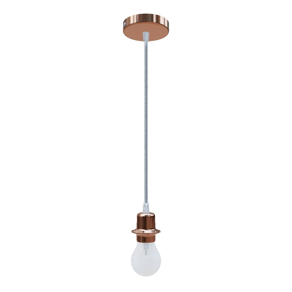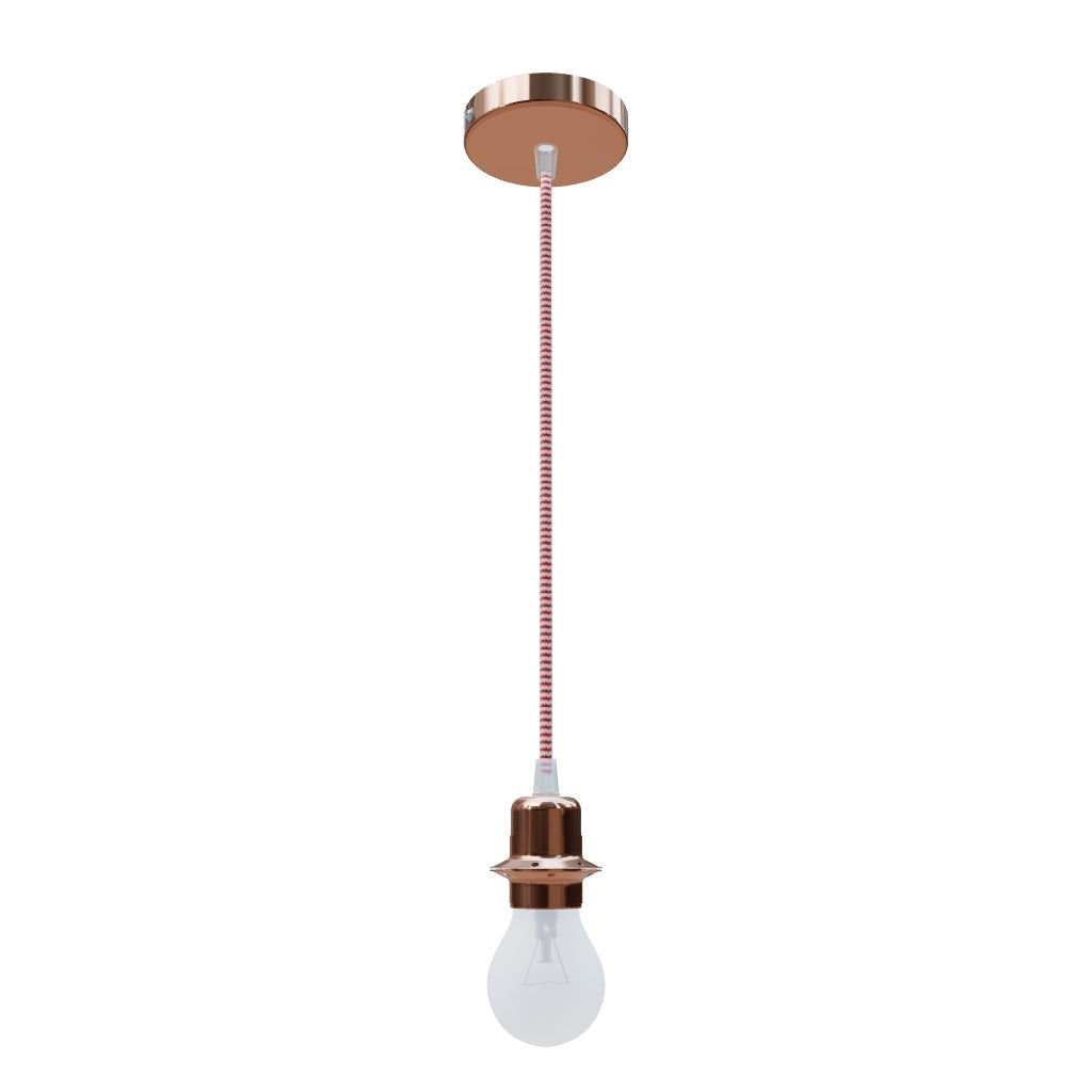 Pendant set with round metal base, textile cable and metal E27 socket. Can be used with or without shade. Suitable with: DOUBLE 40/30, DOUBLE 55/30, ASPRO 40/30, ASPRO 55/30, RON 40/25, RON 55/30, RON 60/19, TEMPO 30/19, TEMPO 50/19.