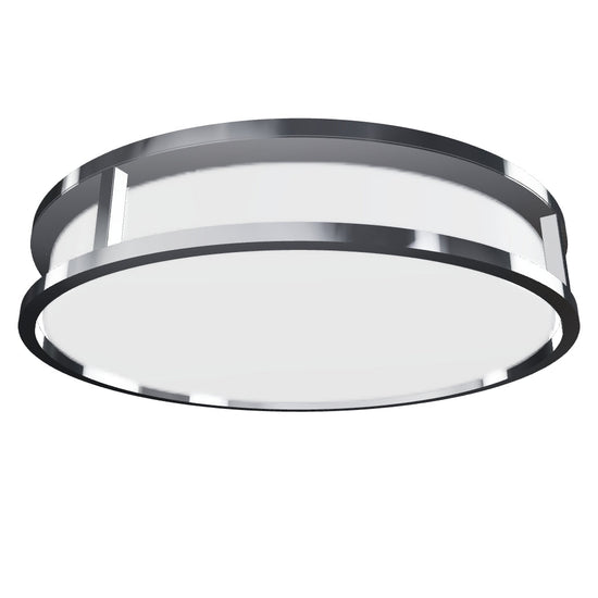 Bathroom ceiling lamp with built in LED, a flat opal-colored glass cover and metal frame.