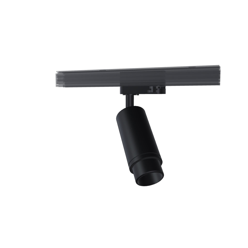 Tubular luminaire for 3-circuit tracks with the possibility of adjusting the light cone using a 10-50° zoom system. The luminaire is suitable for LED light sources with GU10 socket. Use light sources with a 120° beam angle in the luminaire to avoid unwanted shadows.