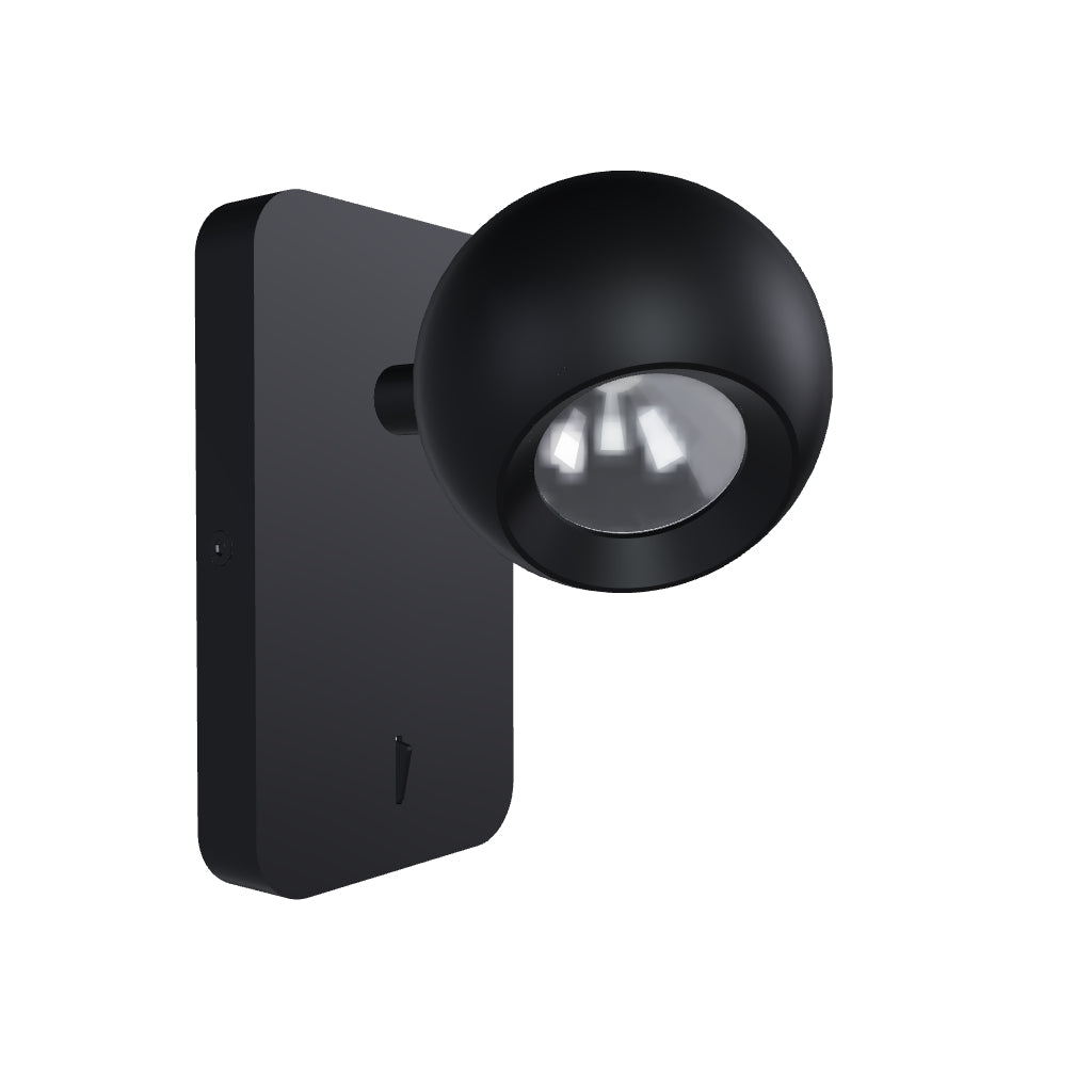 Lacquered wall light with a directional GU10 light source and switch on the base.